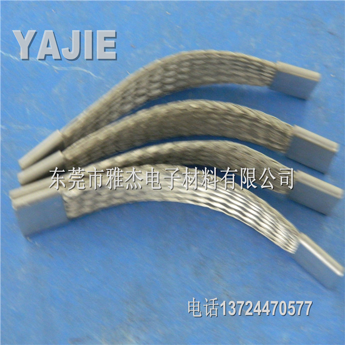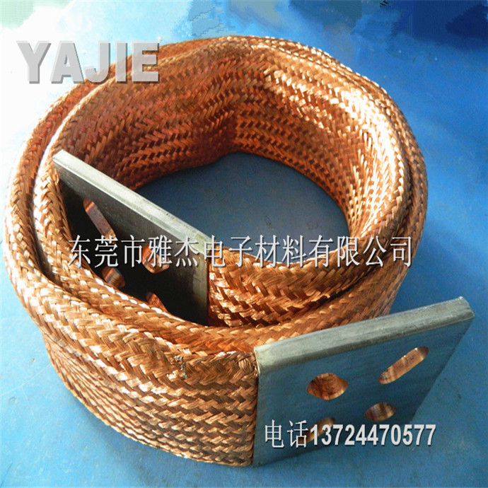 铜编织带软连接产品性能:铜编织网套,用裸铜线、铜编织线,作为导体,两端采用铜端子,接头尺寸按客户要求生产,用冷压方法压制而成。可根据客户要求镀锡镀银。再通过特殊处理,做成高强度大电流软连接。导电率高、抗疲劳能力强。表面平整,光亮,接触面好,导电性能优越.适用性强, 柔软度佳,安装方便,易散热,耐弯曲,铜编织带是用无氧铜丝编织,线经0.10mm,0.12mm ,0.15mm单丝,根据客户要求,柔软度,通电强度等特制而成.广泛使用于高低压电器,真空电器,高低压开关柜,电焊机,汽车,电力机车,电炉,矿用防爆电器,发电机组,碳刷导线的软连接。铜带软连接:搭接口采用分子压熔焊技术一次性焊接成型。产品质量好,导电性强,承受电流大,电阻值小,经久耐用等特点。广泛应用于冶金(如:电解铝、电解锌、电解铜)、化工(如:离子膜烧碱、电镀)、输变电工程(如:电厂、电站)、电力设备(如:变压器、配电柜)、炭素、电力机车、海轮等多种行业。使用条件极端最高温度+300℃,极端最低温度-40℃, 相对最大湿度≤95%。